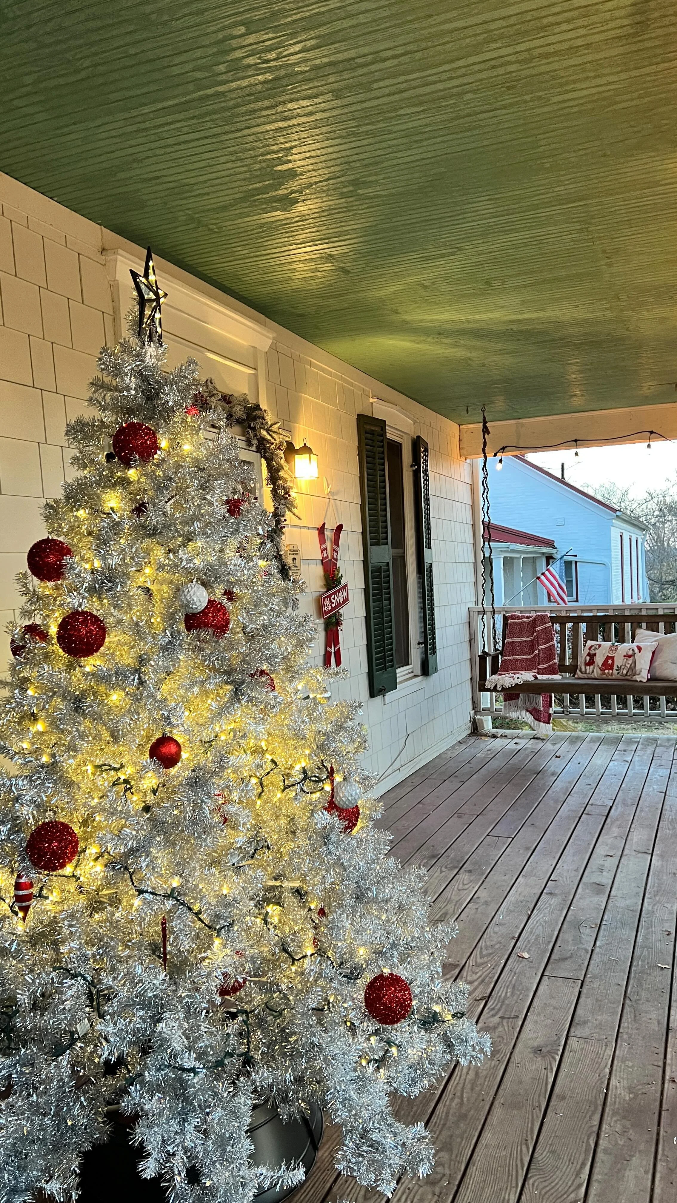 The sunporch is where tranquility and relaxation await. Unwind on the comfortable vintage couch, perfect for leisurely reading or simply enjoying a moment of serenity. Gather around the dining area and savor a delightful meal while basking in the soft glow of string lights overhead. With its panoramic view of the picturesque back yard, this sunporch offers both privacy and a soothing ambiance, providing the ideal space for unwinding and rejuvenating your senses.